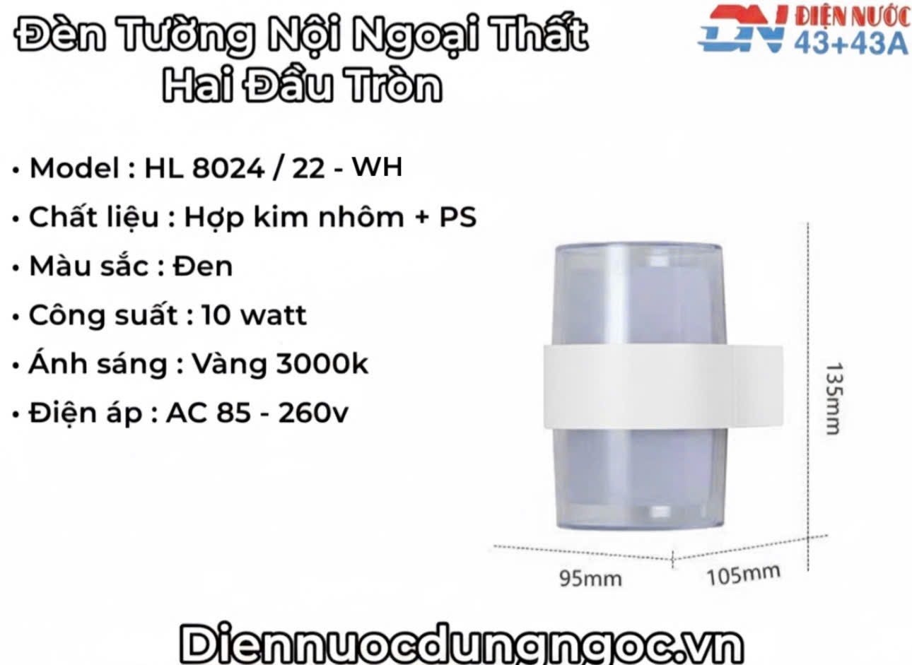 - Tên sản phẩm : Đèn gắn tường hai đầu tròn nội ngoại thất