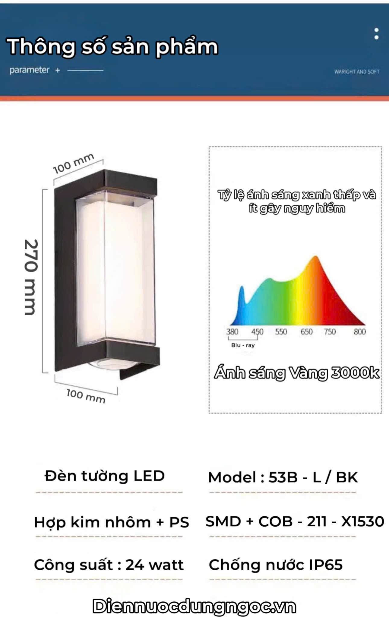 - SỬ DỤNG : Đèn gắn cột, tường nội ngoại thất.