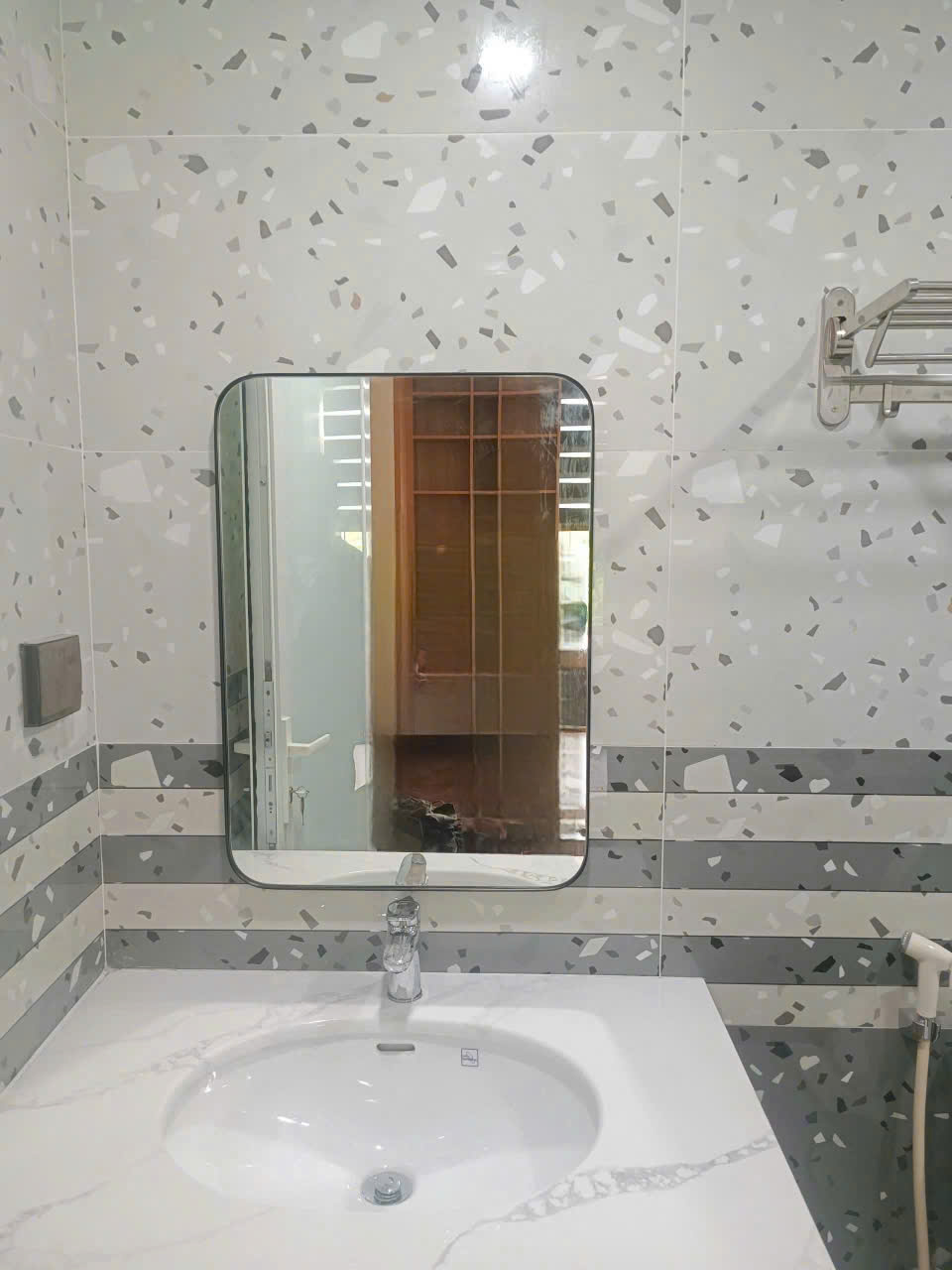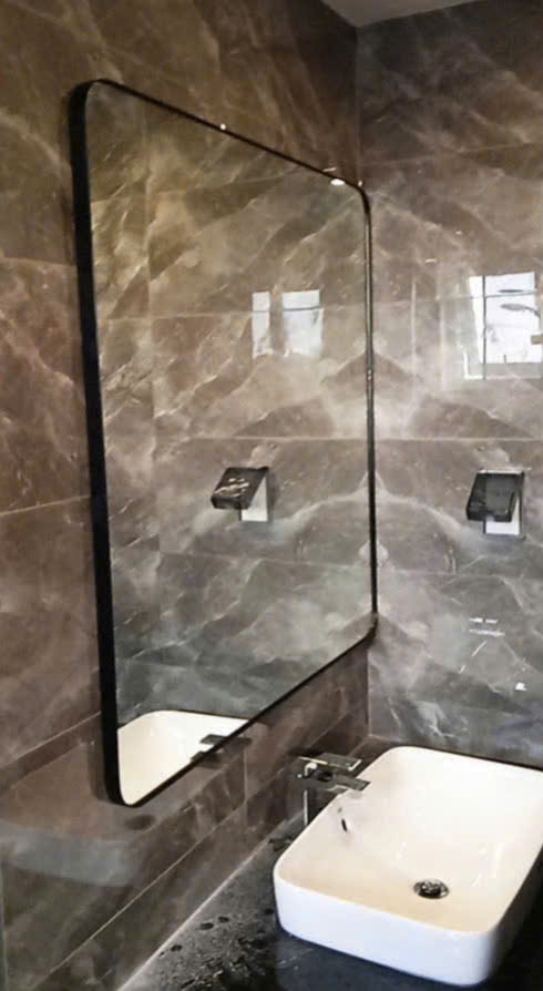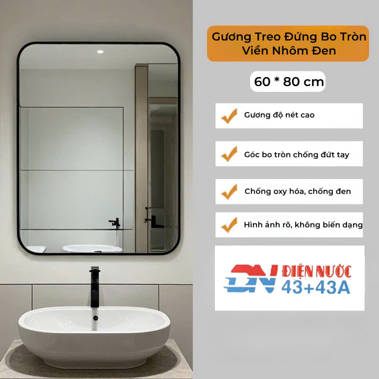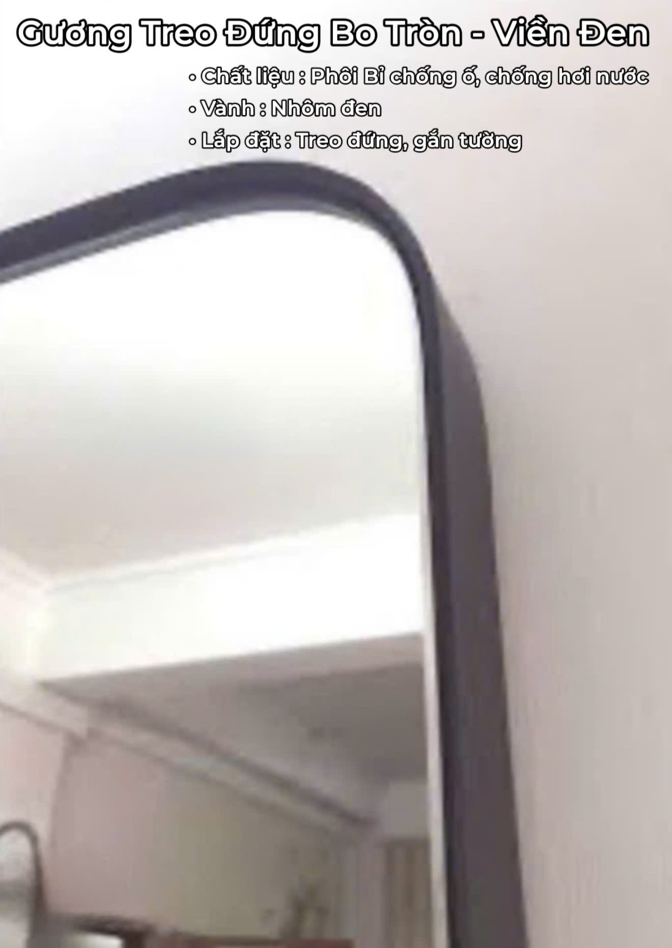 Tên sản phẩm : Gương treo đứng bo tròn viền nhôm đen