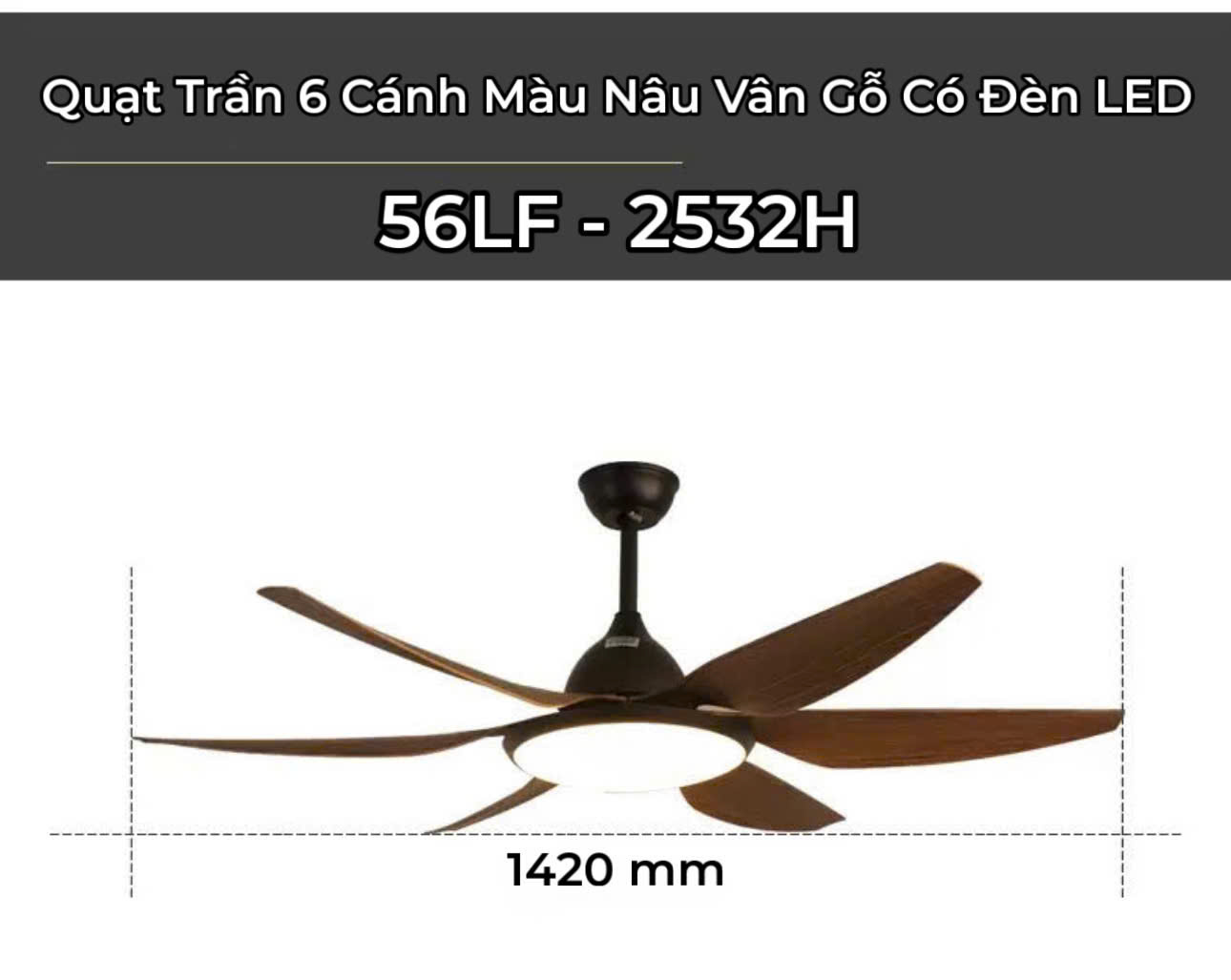 Tên sản phẩm : Quạt trần 6 cánh hiện đại có đèn led