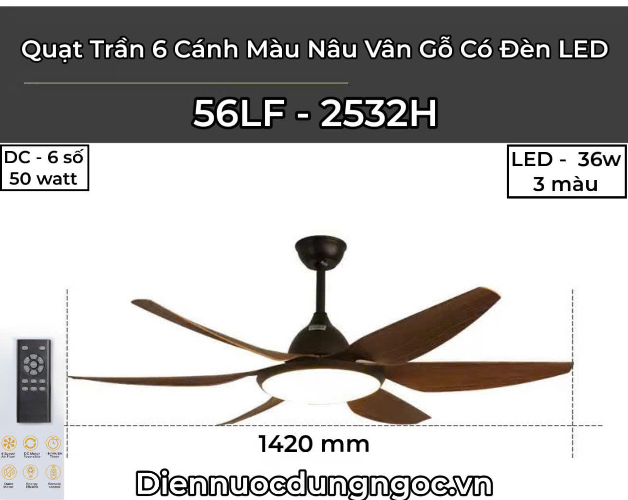 Màu sắc : Cánh nhựa ABS nâu gỗ đậm